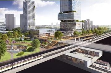 作為成都首批次場站綜合開發的14個TOD示范項目之一,成都行政學院站TOD總投資超150億,項目位于成都東進橋頭堡,以站點為核心,周邊半徑3公里范圍內共規劃有6條軌道線。成都行政學院TOD是成都東西向干線2號線(已運營)和成都第二條環線9號線(規劃)的換乘站點。根據《成都市軌道交通場站一體化城市設計導則》,行政學院站為組團級站點。項目由大型商業綜合體、五星級酒店、超甲辦公、創意街區、住宅、學校等業態構成,以“東進門戶、創驛綠谷”為主題打造為以公共交通結合慢行體系為主要出行方式的“活力中心”。結合功能板塊,形成“交通圈”“商業圈”“生活圈”相互支撐的城市格局。通過加強站點與產業功能區銜接,提升營商環境、吸引高端要素聚集,打造創新開敞空間;健康運動場景依托豐富的綠色資源,滿足多層次人群需要的體育運動場景,完善綠道體育消費新場景;生活娛樂場景提供多種業態布局,同時強調多元、互動、公共性,提升街區的活力。