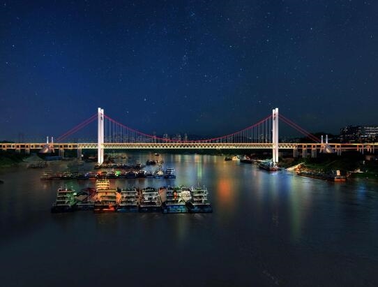 黃桷沱長江大橋為重慶快速路八聯絡線咽喉要道,大橋全長1260m,為單跨懸吊雙塔三跨連續鋼桁梁懸索橋,采用雙層橋面布置,上層為雙向6車道城市快速路,下層中央預留雙向軌道,兩側為雙向4車道城市主干路,為世界在建最大跨徑路軌兩用懸索橋,也是市建科院公司承接的重大監理項目之一。