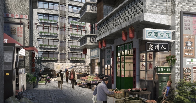 市建科院設(shè)計團隊對小區(qū)進行全面的走訪和調(diào)查研究,大量挖掘當(dāng)?shù)匚幕}絡(luò),了解當(dāng)?shù)鼐用竦男枨笈c問題,充分聽取和尊重居民的意見和建議,在此基礎(chǔ)上定制出一套科學(xué)、合理的改造設(shè)計方案,確保改造設(shè)計能夠體現(xiàn)居民的合理意愿,最大限度增強居民的獲得感和幸福感。設(shè)計改造以整體保護與復(fù)興老街為前提,圍繞“一帶”(忠州老街文化休閑帶)、“一廊”(漢闕廣場藝術(shù)景觀廊)、“一心”(老城區(qū)人文生活中心)的設(shè)計策略,從市政配套、外部環(huán)境、建筑問題、公共樓梯、功能構(gòu)建、專項等六大類多方面對老舊小區(qū)進行改造提升,打造老街集市空間、資產(chǎn)改造空間,新增停車區(qū)、休閑空間、公園等,旨在保留文化遺存、還原文化空間和業(yè)態(tài)、再現(xiàn)老城原生態(tài)生活場景與人文氛圍。