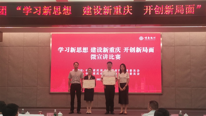 為進一步深化學習、宣傳貫徹習近平新時代中國特色社會主義思想和黨的二十大精神,隆重慶祝中華人民共和國成立75周年,近日,重慶設計集團“學習新思想 建設新重慶 開創新局面”微宣講比賽隆重舉行,重慶市建筑科學研究院有限公司選派的兩名選手彭博、師震分別以92.23分、89.5分的高分在全集團14名參賽選手中位列第二名、第四名,斬獲二、三等獎。