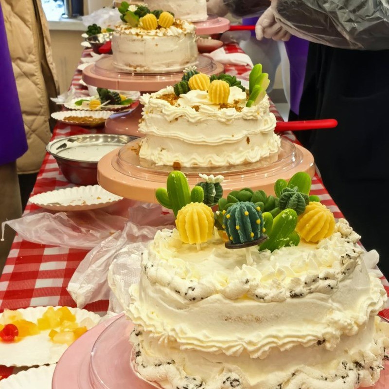 活動(dòng)特邀專業(yè)烘焙師全程指導(dǎo),現(xiàn)場(chǎng)宛如專業(yè)烘焙工坊,轉(zhuǎn)臺(tái)、抹刀等專業(yè)器具及新鮮食材一應(yīng)俱全。烘焙師現(xiàn)場(chǎng)示范蛋糕制作的抹面技法,重點(diǎn)講解裱花技巧、裝飾布局等實(shí)操要點(diǎn)。女職工分組操作,通過(guò)奶油調(diào)色、裱花造型等創(chuàng)意實(shí)踐,完成各具特色的節(jié)日蛋糕。現(xiàn)場(chǎng)此起彼伏的交流聲與歡笑聲中,既有裱花失誤引發(fā)的趣味互動(dòng),也不乏驚艷造型收獲的集體贊嘆。制作完成后,女職工們攜作品合影留念,并將成品封裝帶回家中分享。