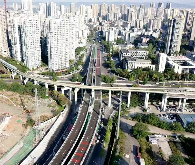 新九中路工程起點(diǎn)接二縱線華巖3號立交東側(cè),途經(jīng)九中隧道、新郭伏路、陳庹路,終點(diǎn)接大渡口區(qū)錦霞街,項(xiàng)目連通快速路二縱線、內(nèi)環(huán)快速路、西城大道等快速通道,加強(qiáng)華巖、二郎、九宮廟等區(qū)域的交通聯(lián)系,強(qiáng)化大渡口區(qū)與九龍坡區(qū)之間的區(qū)域聯(lián)動(dòng),有效緩解周邊區(qū)域交通壓力、提高出行效率。