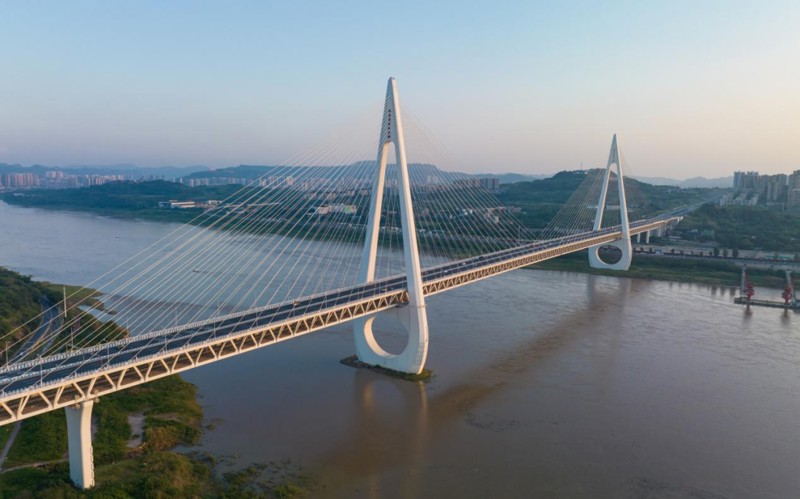 白居寺長江大橋項(xiàng)目西起于重慶大渡口區(qū)陳家閣立交,跨越長江后,東止于巴南區(qū)內(nèi)環(huán)快速路太陽崗立交。大橋主線雙向8車道,按城市快速路時(shí)速60公里設(shè)計(jì)。該橋成功建設(shè)對于連通江畔兩岸交通起到關(guān)鍵作用,同時(shí)拉大了城市主骨架,對于重慶主城建設(shè)增添了濃墨重彩的一筆。