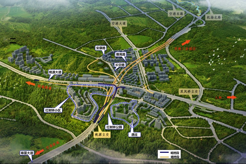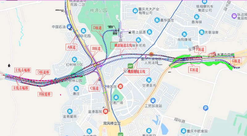 椿萱大道作為快速路五聯(lián)絡(luò)線東側(cè)的重要組成部分,是連接中心城區(qū)與外圍組團(tuán)的關(guān)鍵通道。此次檢測(cè)路段起于椿萱大道與金山大道形成的蔣家山立交,止于空港東路,全長(zhǎng)約9.2km,為城市快速路,含2座立交(桃源立交、空港東路立交),1座大橋(蔣家灣大橋),1條隧道。